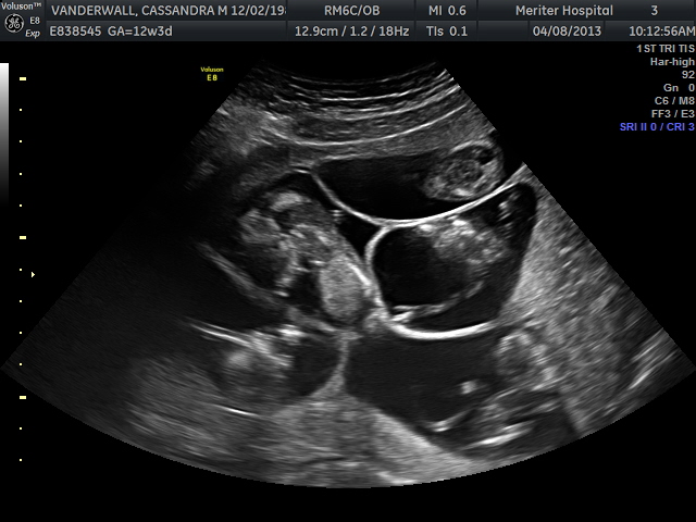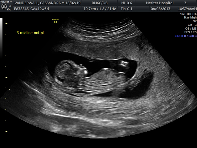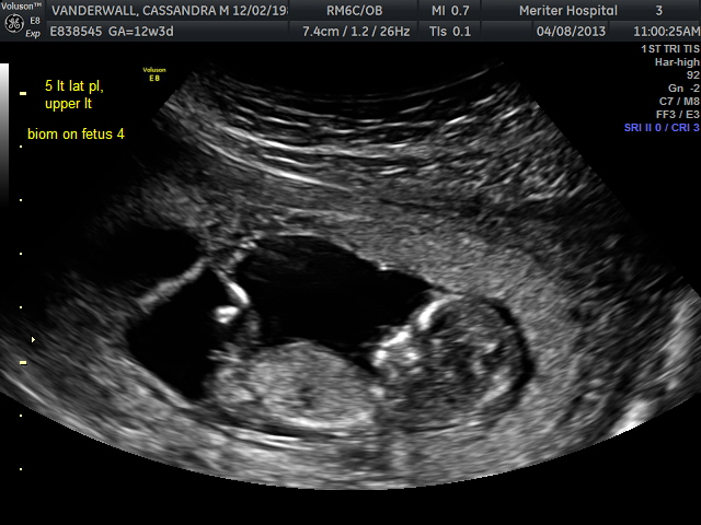 The second part of our visit today was focused on completing the 1st trimester screening which included anatomical assessments, heart rate assessments, nuchal scans, and numerical assignments. Overall, everyone is right on track. They are all just shy of 2.5 inches long, have all 4 limbs and strong heart beats between 150-155bpm. Also, the nuchal scan is an assessment of the thickness of the skin on the back of the baby’s neck. Greater thickness (> 2-3mm) is correlated with an increased incidence of congenital heart defects and Down syndrome. All of our little ones’ nuchal scans were <2 mm! They were also able to number each placenta for good, or so they are hoping. Based on the photo above, number 1 is on the bottom right, number 2 is in the center row on the right, baby 3 is to the left of baby 2, baby 4 is just below baby 3 and to the left of baby 1, and baby five is the cherry on top! All 5 have a distinct location, but have shifted a bit since the last ultrasound to provide themselves more room for growth. The ultrasound technician said that the placement of all of the placentas look great!
