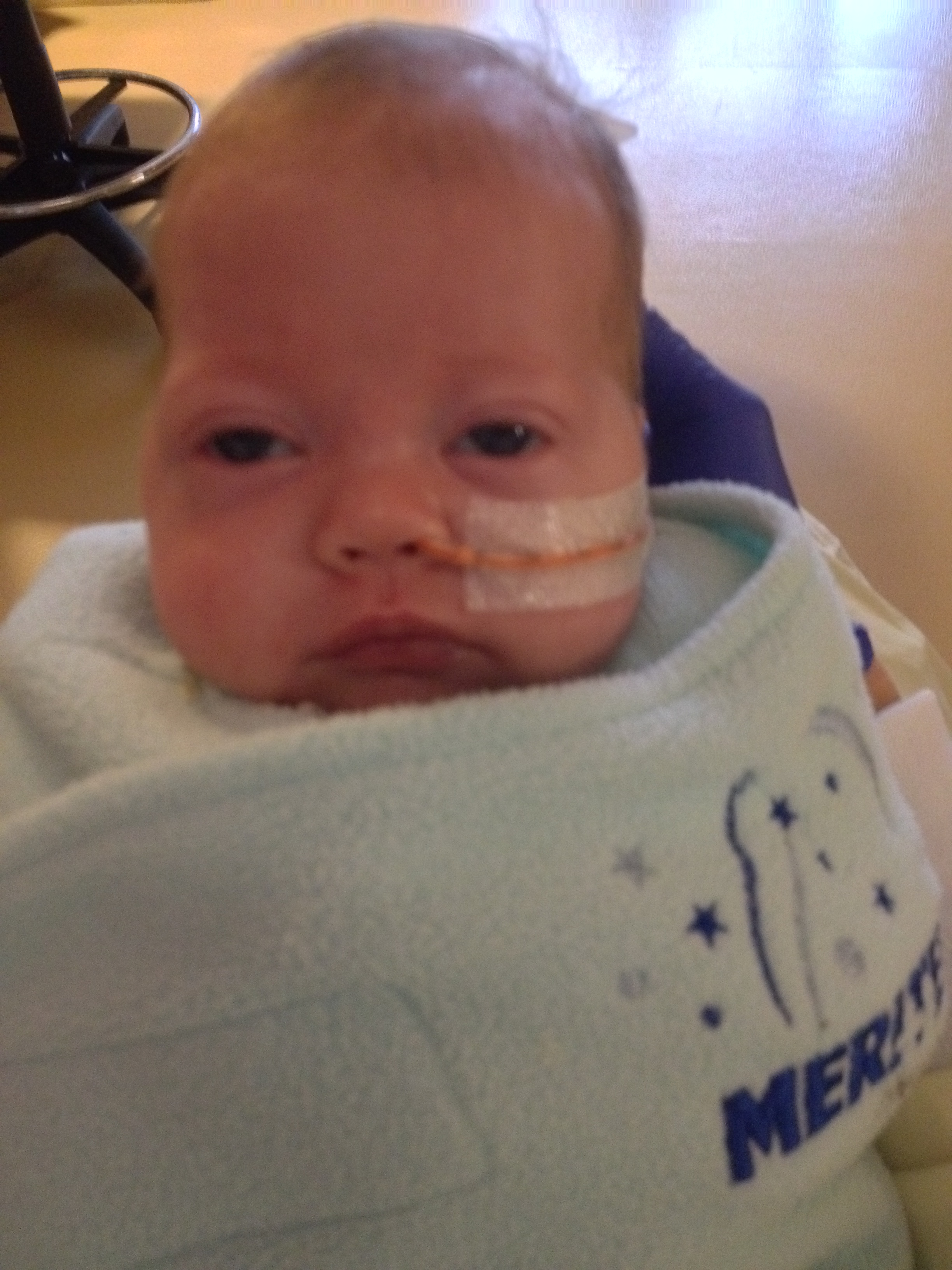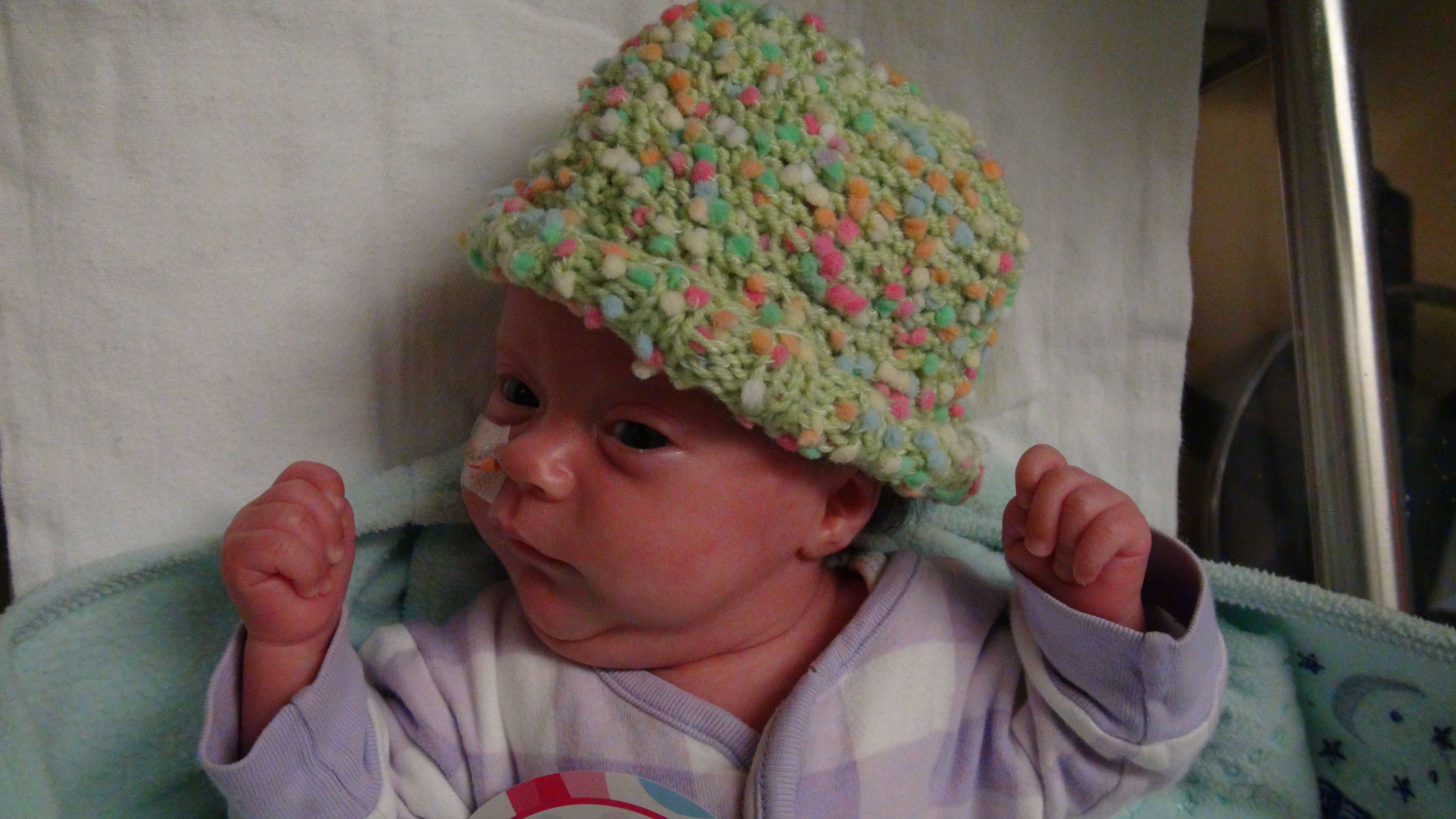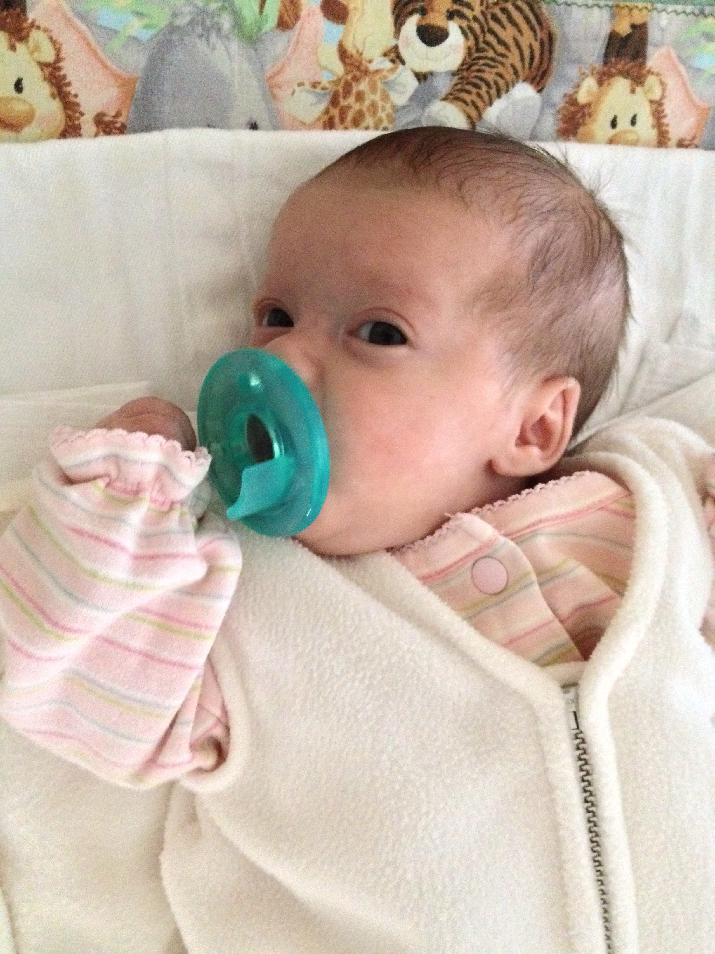 Little Lily continues to amaze us with her resiliency. We have had many scares following her grade 2 IVH with surrounding PVL, but she has showed no signs that this is hindering her development. She is one of the stronger eaters in the bunch and her growth has also been stable. She now weighs 5lbs and 13oz.