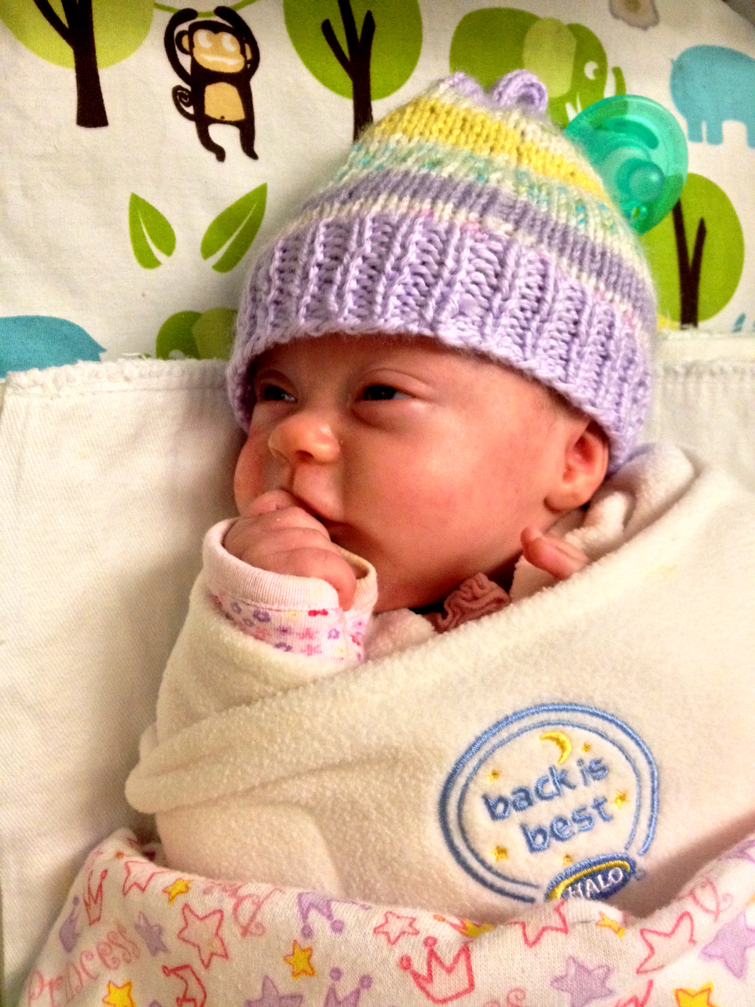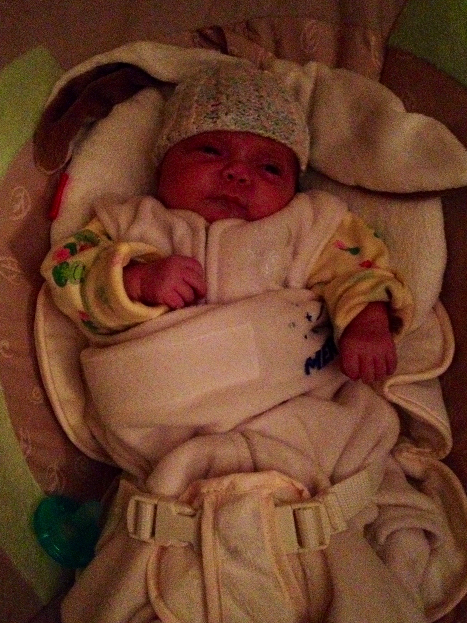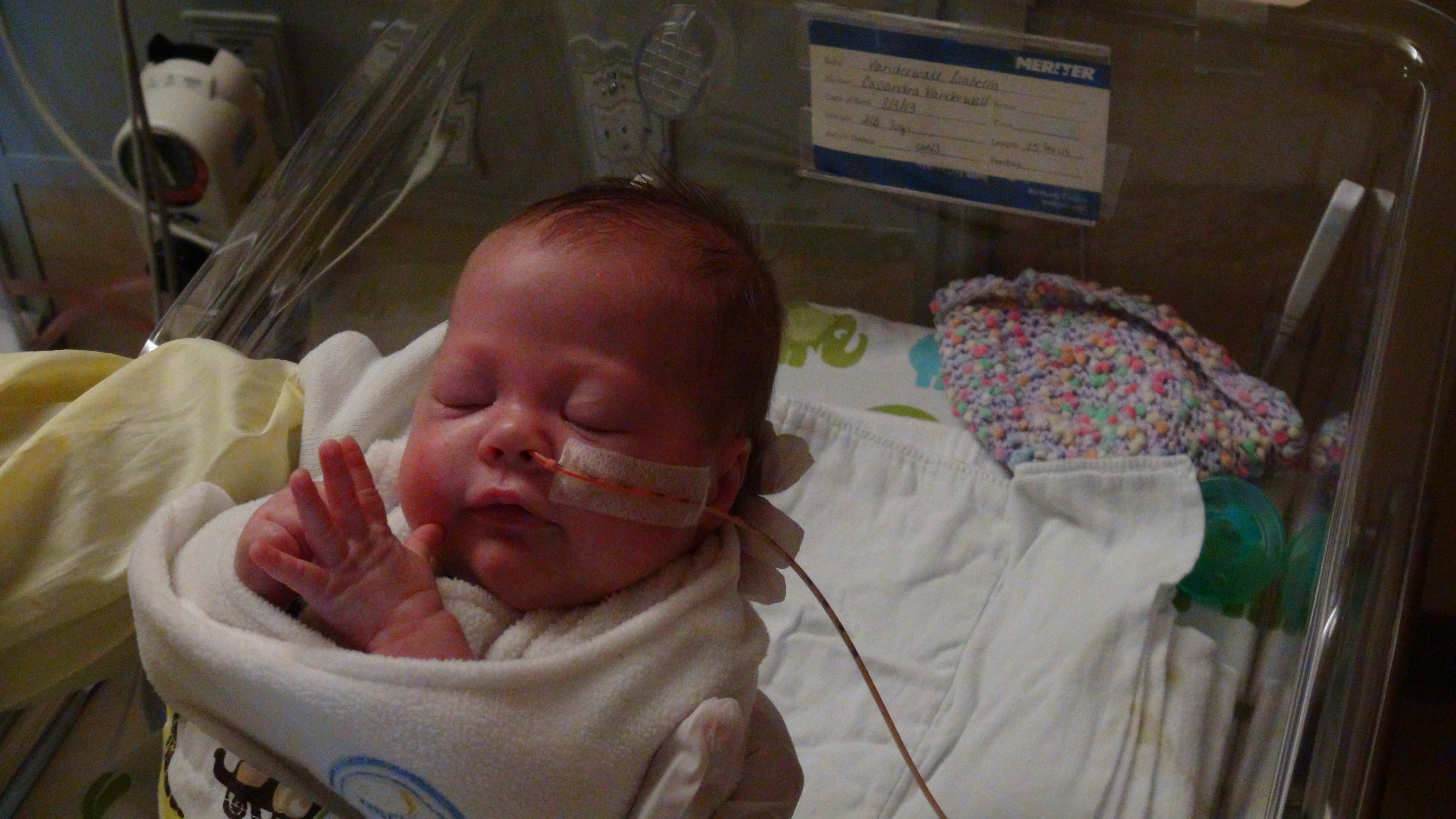Little Lily continues to amaze us with her resiliency. We have had many scares following her grade 2 IVH with surrounding PVL, but she has showed no signs that this is hindering her development. She is one of the stronger eaters in the bunch and her growth has also been stable. She now weighs 5lbs and 13oz.