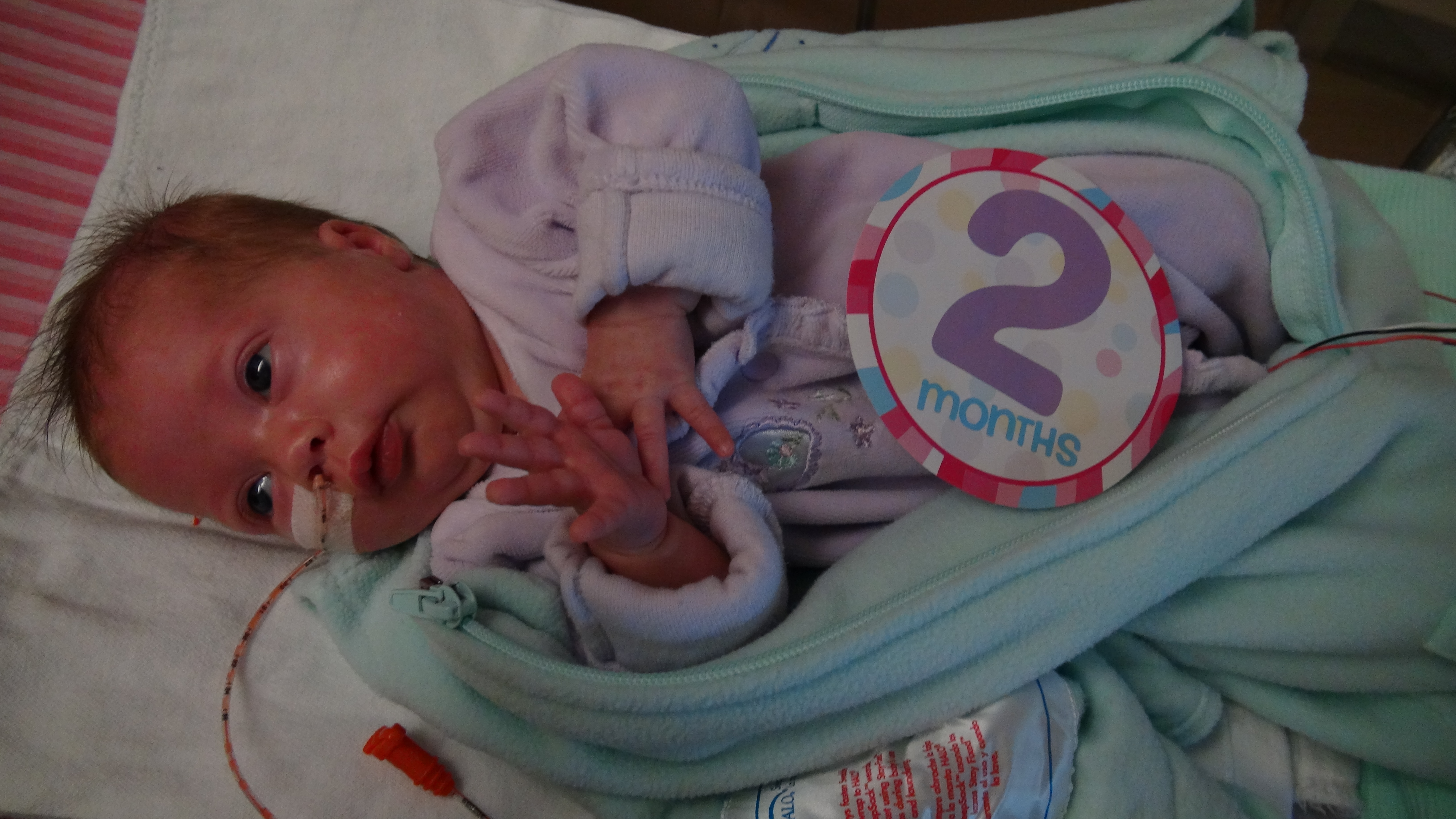 Our little Princess Ellie also celebrated her 2-month birthday with a reanastamosis. She had her jejunum reconnected and was able to be extubated today. It was wonderful to see her breathing on her own and even smiling after they removed the tube. She truly is a tough cookie. Her tolerance for pain and her ability to self-soothe are amazing. We have no doubt that this was only a speed bump on her journey home. She is our little peanut at 5lbs and 7oz, but keeps pace with Theo in the eating department and definitely may beat the other girls home.