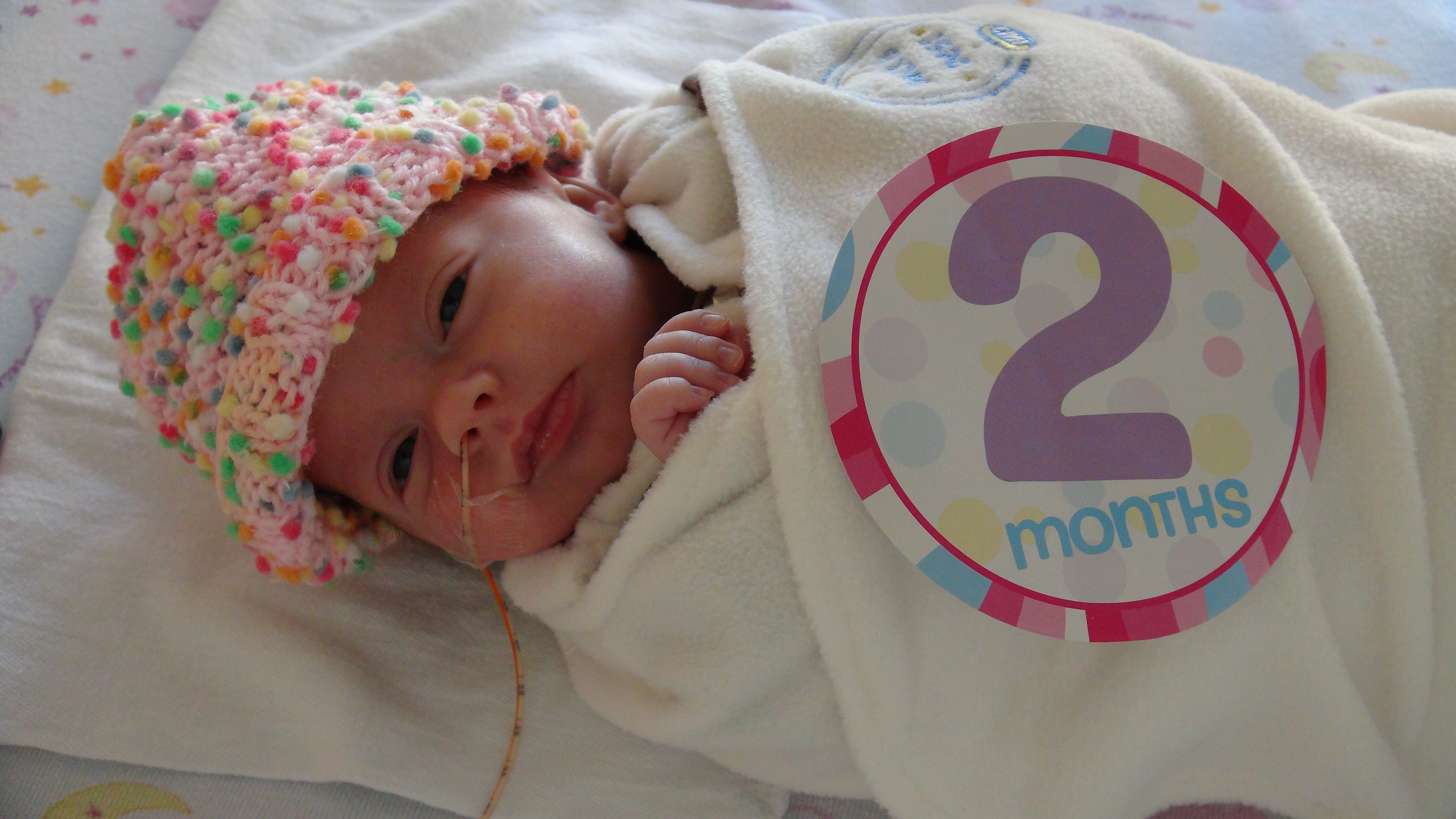At these monthly milestones, I look back and truly cannot believe all that we have experienced in the last 2 months. It seems like just yesterday that I was trying to figure out how to change the diaper of a 2lb baby in an isolette without lifting them, while being blinded by their “bili light.” Today, I can walk right up to their crib, move a few cords, and lift them up to comfort them. I am eager for the day for them to come home where we can snuggle gown, glove and cord free!