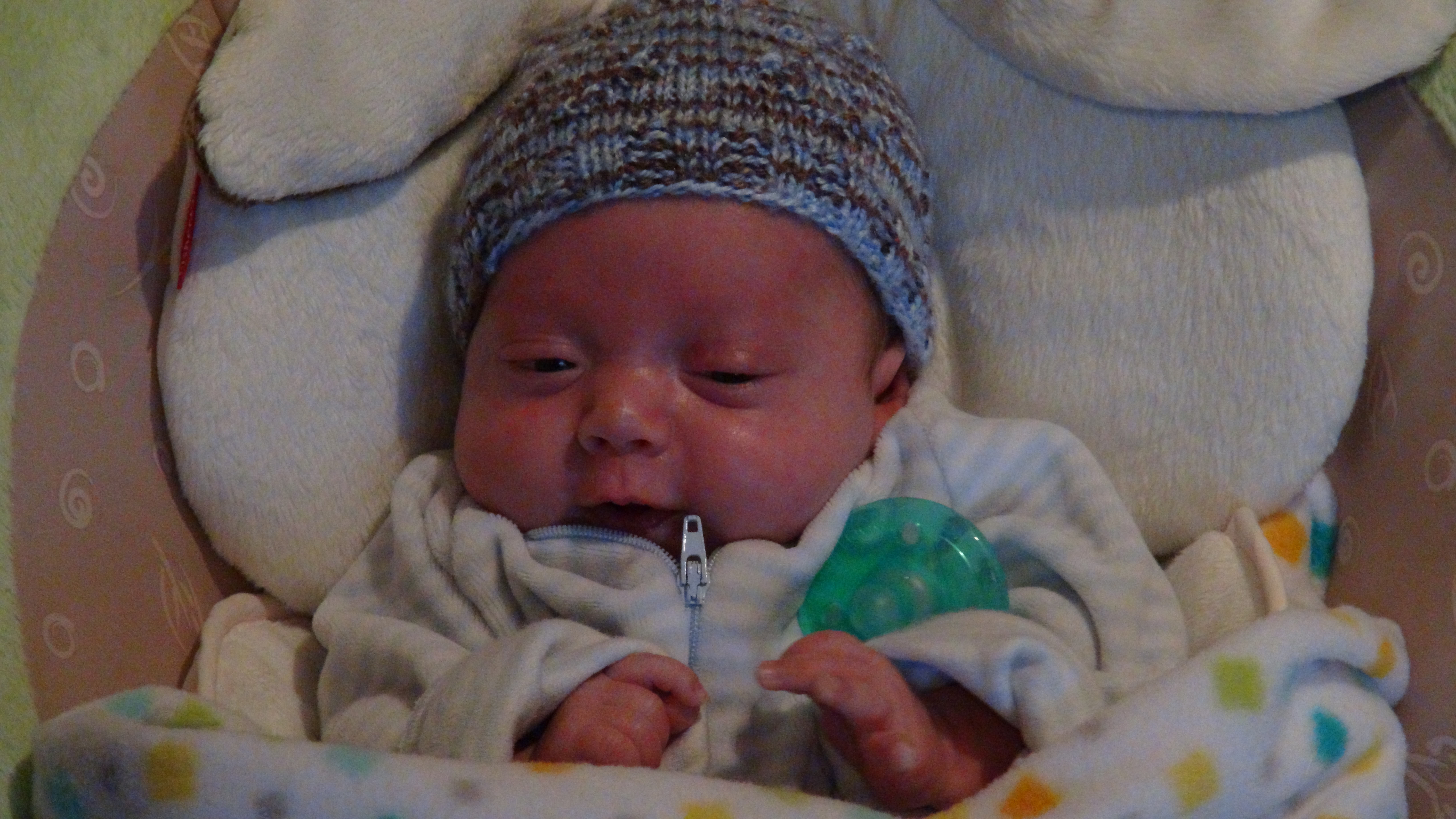 Looks like our cute Mr. Tutti has something brewingTheo passed out after one of his trademark high-volume feedings
